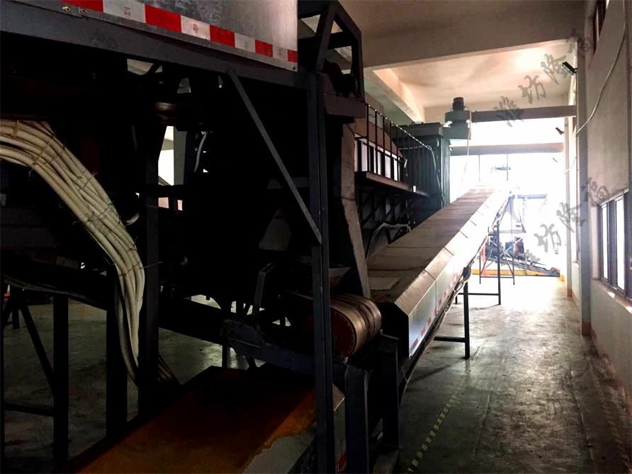 1、 发酵、腐熟、陈化后的合格原料用装载机送入皮带料仓秤内;