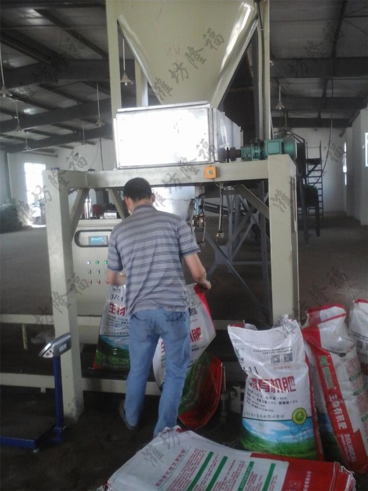4、微生物有机肥进入全自动包装秤称重、包装、入库销售