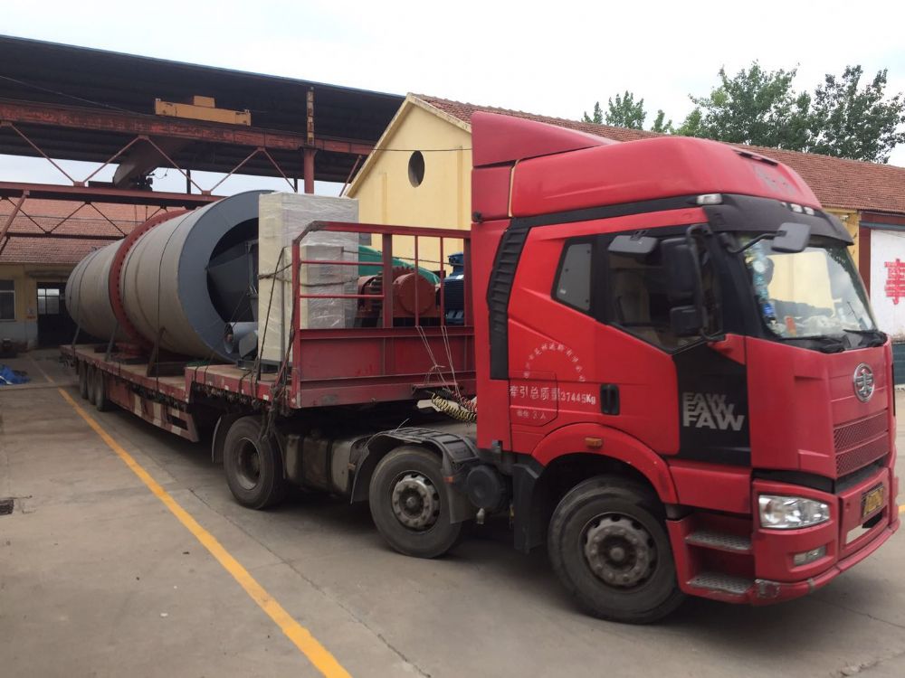 今天发往烟台的年产20万吨有机肥设备顺利装车并发走,筒体直径2.8米,长24米。